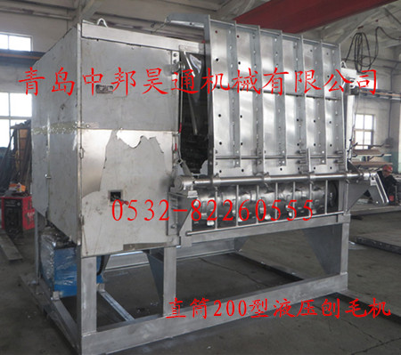 優(yōu)點(diǎn):不銹鋼外殼,鍍鋅框架,10mm厚的國標(biāo)材質(zhì);操作方便、省力;運(yùn)作穩(wěn)定,無振動(dòng)感;打毛速度快,打毛率高,且價(jià)格便宜,不受重量的限制,不僅外觀比直筒200型的漂亮,出豬處有擋板,防止了污水的飛濺,恰到好處的結(jié)構(gòu)使出豬更流暢。適合于小型屠宰廠(場)使用。